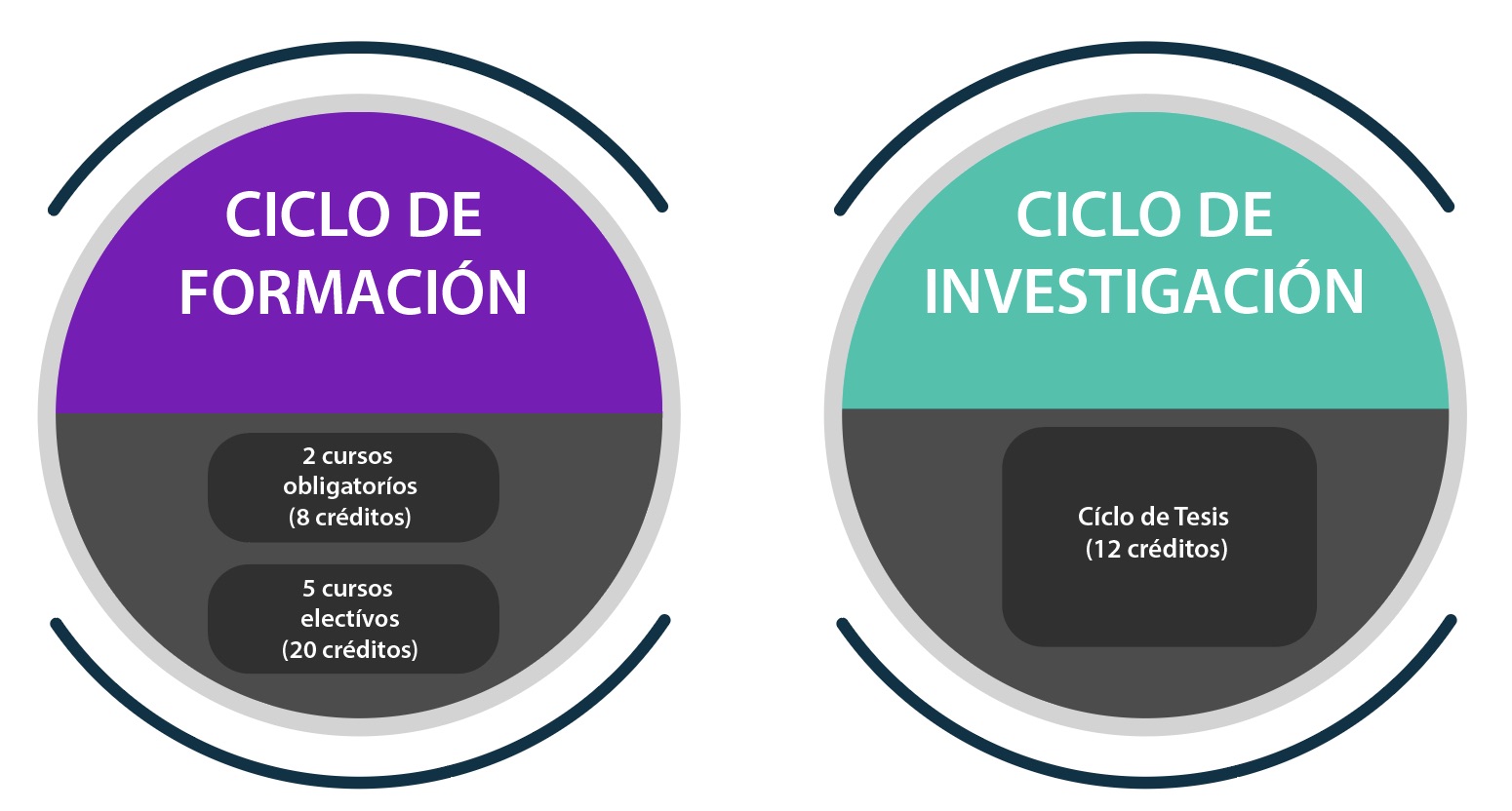El programa académico está compuesto por un ciclo de formación de 28 créditos y un ciclo de investigación de 12 créditos. La Maestría en Ingeniería Industrial puede completarse en dos (2) años con una dedicación de medio tiempo. Para ello, el programa exige cursar: